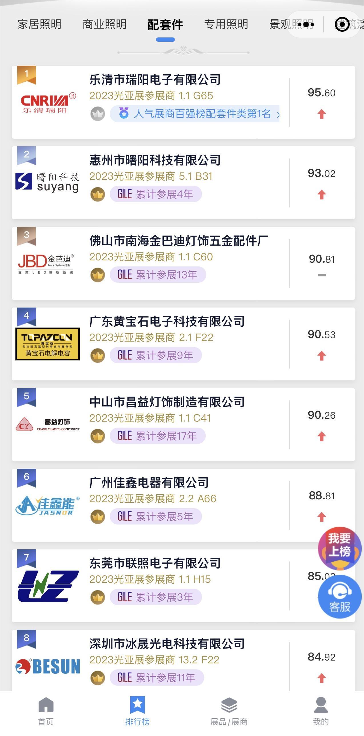 恭喜我司在本次“第28届广州国际照明展览会(光亚展)【人气展商百强榜】配套件 领域”的活动中获得第五名的成绩,且在【展商荣誉榜】中“光·智能”领域中获得第一名的成绩